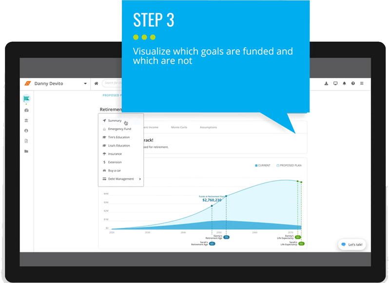All by running all of your personal data through a series of complex financial modeling calculations to give you the exact statistical probability that you will be able to fund your goals.